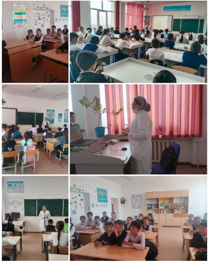 Иммундау апталығы аясында мектебімізде мектеп медбикесі А. Дүйсембай мен сынып жетекшілер 2-10 сынып оқушыларына профилактикалық екпелер жүргізілетін инфекциялық аурулар (қызылша, қызамық, эпидпаротит, вирустық А, В гепатиттері, дифтерия, сіреспе, көкжөтел, адам папилломасы вирусы, полиомиелит, пневмококк, туберкулез) бойынша түсіндірме жұмыстары жүргізіліп, диктант жазды.
