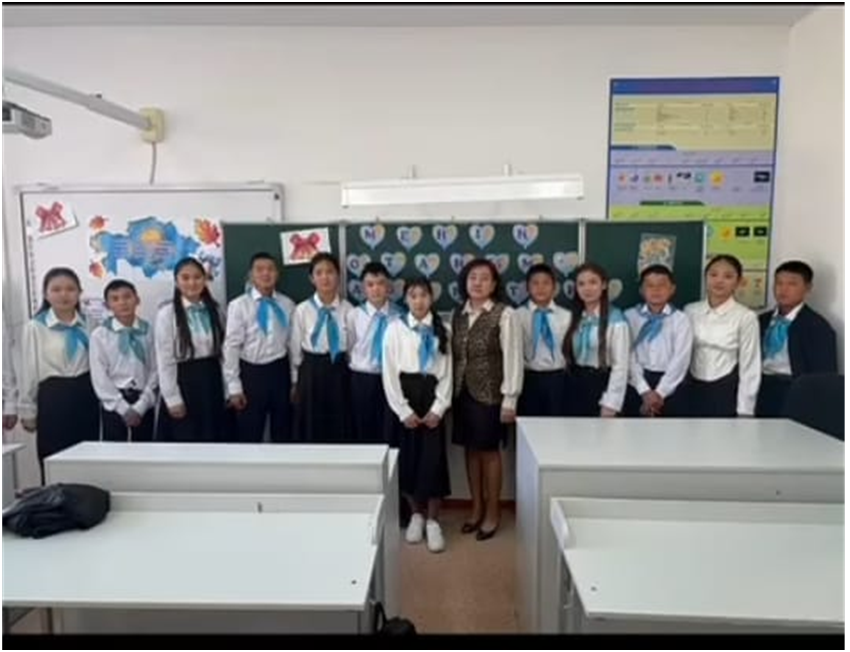 02.09.2025ж 8 сынып оқушыларымен "Менің Отаным-Қазақстан" тақырыбында сынып сағаты өтілді: Мақсаты: Жас ұрпақты отанын сүюге, еліміздің рәміздерін қастерлеуге, туған еліне жеріне деген сүйіспеншілігін арттыру.