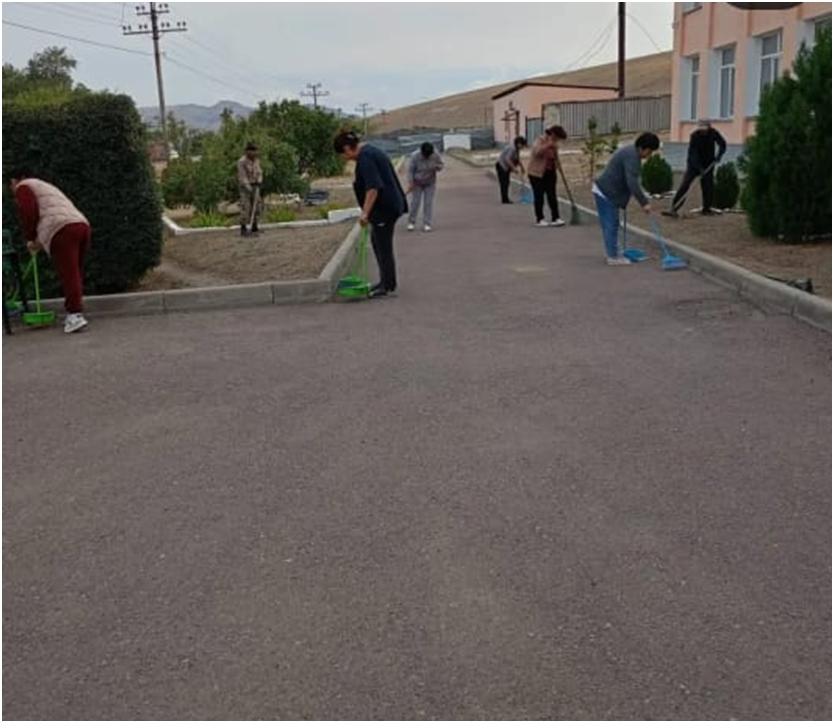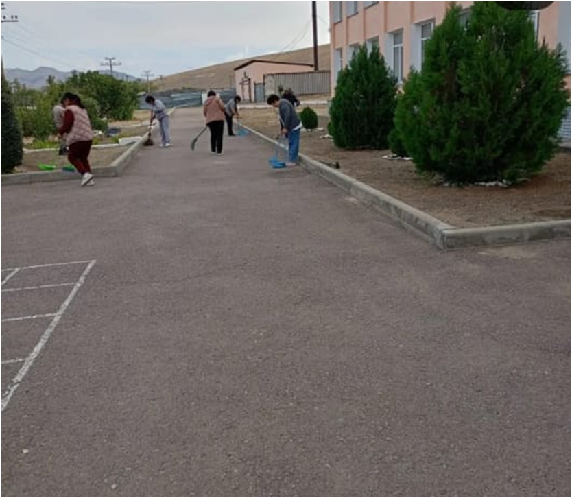 18 сентябрь 2025 0 1 2 3 4 5 Іс-шара 18.09.2025ж "Таза Қазақстан республикалық акциясы аясында мектеп қызметкерлері мектеп аумағына тазалау жұмысын жүргізді.