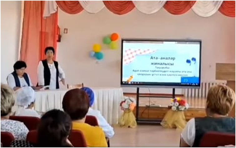 19 қыркүйек күні "Адал азамат тәрбиелеудегі жауапты ата-ана, қолдаушы ұстаз және қауіпсіз мектеп" тақырыбында мектепішілік ата-аналарымен жиналыс өткізілді.