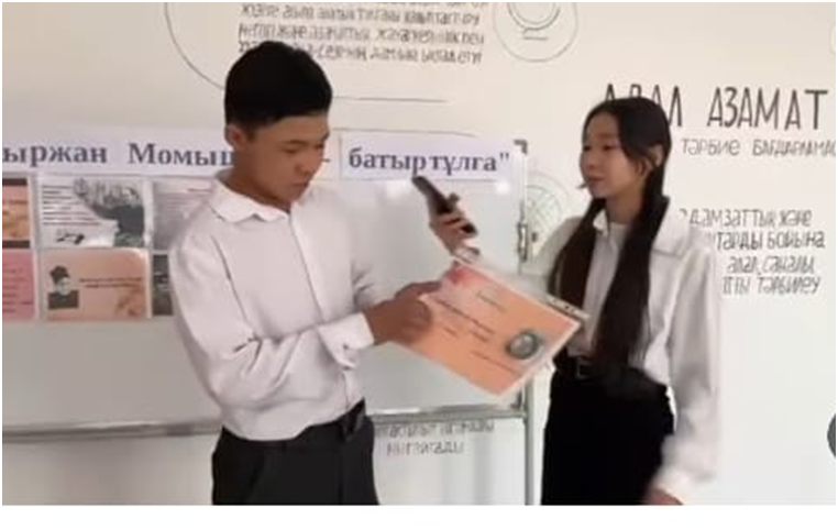 "Заң мен тәртіп" жобасы аясында мектеп оқушылары ақын жазушылардың нақыл сөздерін насихаттауда.
