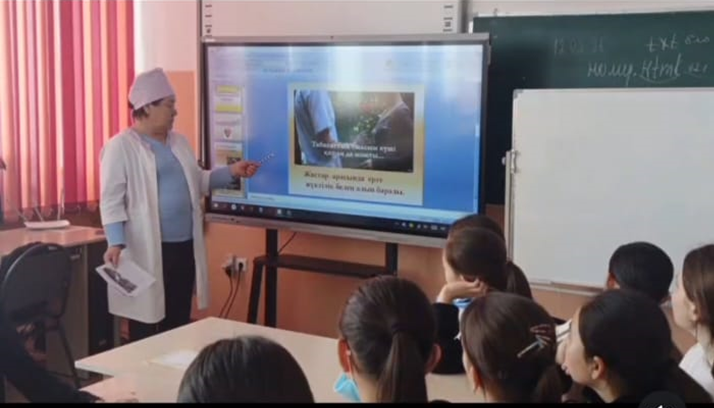 13 ақпан күні ерте жүктіліктің алдын алу бойынша мектептің қыздарымен мектеп медбикесі Борибаева Анар Абилмажиновна және қыздар кеңесінің жетекшісі Исабекова Гульмира Кенжебековна дәріс ұйымдастырды