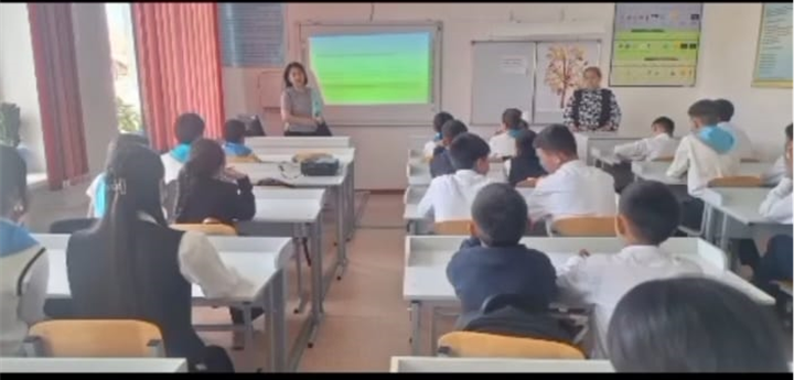 Сабақ барысында оқушыларға Қазақстан Республикасының Денсаулық сақтау министрлігі ұсынған бейнесабақ көрсетіліп, денсаулықтың маңызы, дұрыс тамақтану, қозғалыс және пайдалы әдеттер туралы айтылды.