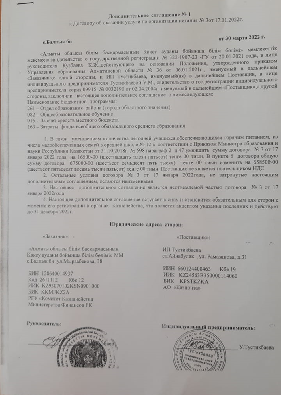 Қоғамдық тамақтандыру қызметтерін көрсету шарты » №12 орта мектебі