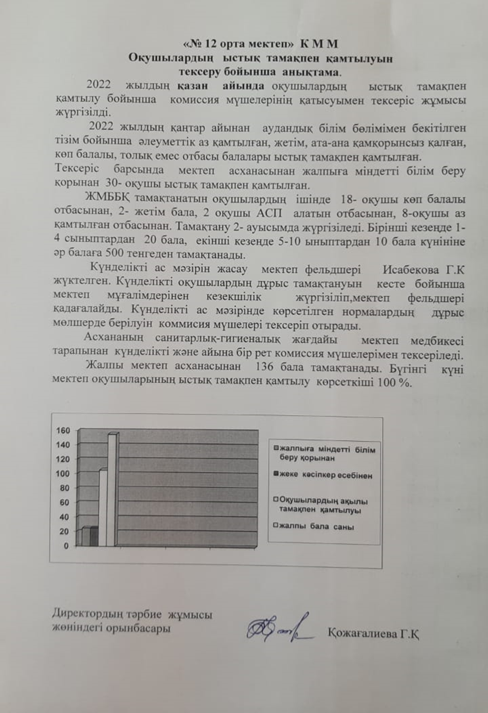 Ыстық тамақпен қамту бойынша анықтама » №12 орта мектебі