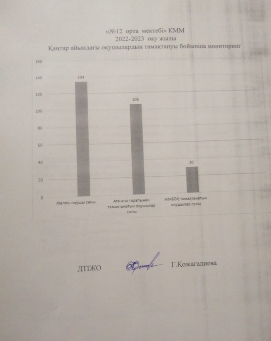 Қаңтар айындағы оқушылардың тамақтану мониторингі » №12 орта мектебі